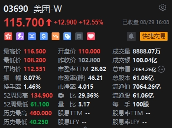 美團績后高漲逾12%領漲科網(wǎng)股。美團昨晚公布財報顯示,2024年第二季度營收823億元,同比增長21.0%,市場預估804.2億元;調(diào)整后凈利潤136.06億元,同比增長77.6%,市場預估106.1億元。美團還公布,根據(jù)股份購回授權,不時在公開市場購回總金額不超過10億美元的公司B類普通股股份。