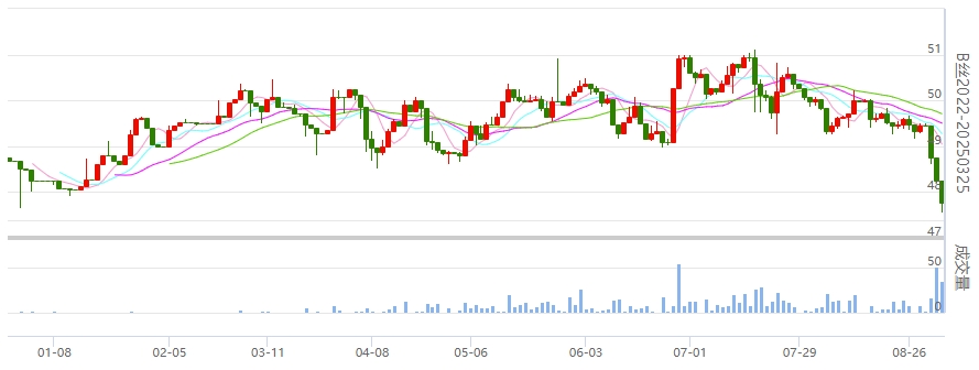 今日(2024年09月03日,周二)中國繭絲綢交易市場生絲電子指數(shù)下跌1.03%報(bào)收于4789.82點(diǎn)。B絲2022D(商檢4A級生絲):240925合約下跌0.84萬元報(bào)收于47.94萬元;250325合約下跌0.48萬元報(bào)收于47.76萬元;250925合約下跌0.51萬元報(bào)收于47.16萬元。