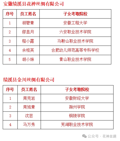 熱烈祝賀花神絲綢、金川絲綢員工子女在2024屆高考中金榜提名,再傳捷報(bào),本年度共有9名員工子女高考金榜題名: