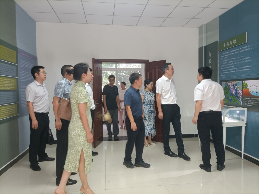 譚青松縣長一行先后參觀了蠶科院生態(tài)果桑園、蠶桑特色產(chǎn)業(yè)街、科研中試產(chǎn)線、桑黃人工栽培實(shí)驗(yàn)室、蠶業(yè)科普基地,隨后雙方圍繞蠶桑資源綜合利用開展座談交流。熊本華書記就蠶科院的歷史沿革、人才建設(shè)、蠶??蒲泻投嘣l(fā)展方面取得的成績和未來發(fā)展方向做了簡要介紹。