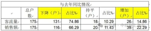 2,從銷售情況來看,受訪的商家反饋的經(jīng)營狀態(tài)與客流情況基本一致。有63.71%的商家反饋今年的銷售與去年同比是下降的。僅有20.46%的商家反饋銷售同比有所增加。