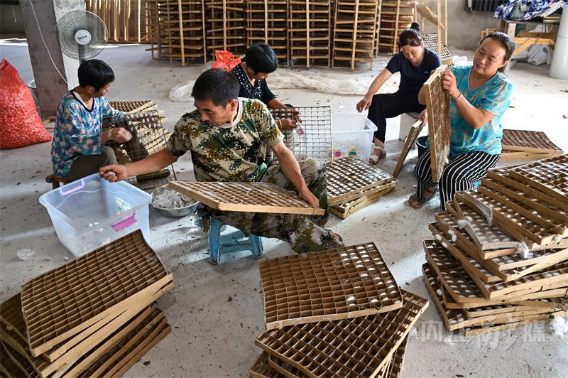 9月5日,內(nèi)江市東興區(qū)雙橋鎮(zhèn)雙流村,東興區(qū)賈偉桑蠶藥材家庭農(nóng)場,蠶農(nóng)正在剔除次繭
