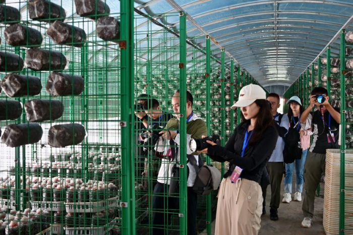 中省市主流媒體“走進幸福寧南 見證時代新貌”新聞攝影采風(fēng)活動走進寧南縣松新鎮(zhèn)碧窩現(xiàn)代農(nóng)業(yè)園區(qū)食用菌基地
