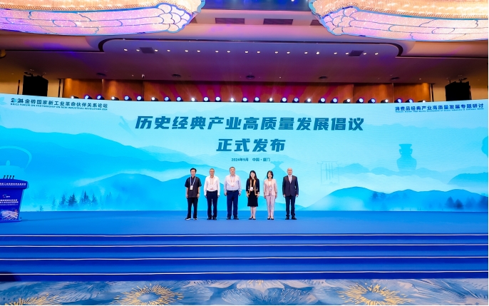 9月10日,由工業(yè)和信息化部、福建省人民政府共同主辦的2024金磚國家新工業(yè)革命伙伴關(guān)系論壇在福建省廈門市開幕。工業(yè)和信息化部部長金壯龍,福建省委書記、省人大常委會主任周祖翼等領(lǐng)導(dǎo)出席并致辭,中共中央對外聯(lián)絡(luò)部、外交部、國家發(fā)展和改革委員會、科學(xué)技術(shù)部等部門相關(guān)司局負(fù)責(zé)人,以及來自31個(gè)國家的政府主管部門、駐華使節(jié)、知名企業(yè)、行業(yè)協(xié)會、智庫、金融機(jī)構(gòu)代表,聯(lián)合國工業(yè)發(fā)展組織、數(shù)字合作組織等國際組織代表,共計(jì)500余人參會。凱喜雅集團(tuán)董事長、總裁張國強(qiáng)應(yīng)邀出席本次論壇,并參與消費(fèi)品經(jīng)典產(chǎn)業(yè)高質(zhì)量發(fā)展專題研討,共同發(fā)布?xì)v史經(jīng)典產(chǎn)業(yè)高質(zhì)量發(fā)展倡議。