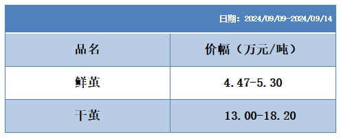 根據(jù)本周蠶繭報價按照指數(shù)方案形成的基準品價格區(qū)間