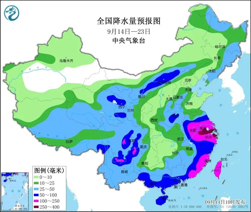 根據(jù)中央氣象臺,未來10天(9月14-23日),西北地區(qū)中東部、華北北部、江淮、江南東部、四川盆地等地大部地區(qū)累計降雨量有40~80毫米,部分地區(qū)有80~120毫米,其中華東沿海等地的部分地區(qū)地區(qū)有200~400毫米;上述大部地區(qū)累計降雨量較常年顯著偏多,我國其余大部地區(qū)降水較常年同期偏少。