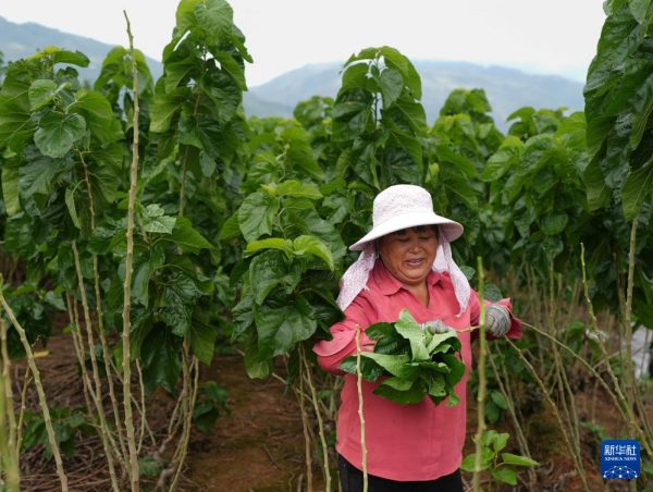 秋日里,四川省涼山彝族自治州寧南縣連片的桑樹長勢旺盛,當?shù)厝罕娒χ烧H~。當?shù)刈?0世紀八十年代起,依托區(qū)位優(yōu)勢,持續(xù)發(fā)展蠶桑產(chǎn)業(yè)。目前,全縣共有桑園30萬畝,2023年帶動全縣2.5萬戶、10.2萬人從事桑蠶繭絲產(chǎn)業(yè),農(nóng)戶售繭收入7.96億元;全縣頂級(6A級)生絲年產(chǎn)量1200噸,占全國50%以上,蠶桑產(chǎn)業(yè)成為了寧南縣富民第一產(chǎn)業(yè)。