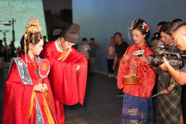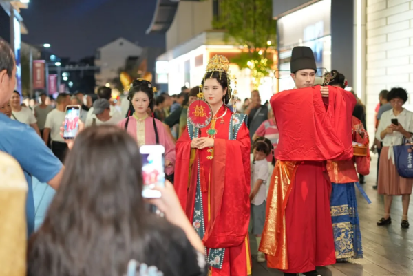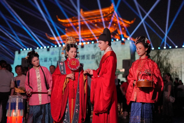9月12日晚,由文化和旅游部政策法規(guī)司指導,中共江蘇省委宣傳部、江蘇省文化和旅游廳、江蘇省人民政府外事辦公室主辦的第六屆大運河文化旅游博覽會啟動儀式在蘇州舉辦,蘇州絲綢傳統(tǒng)服飾快閃活動現(xiàn)場。