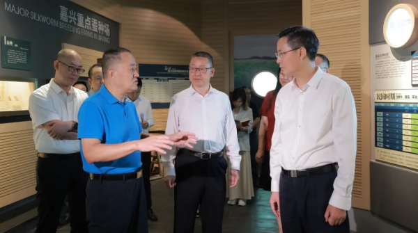 陳偉書記走進(jìn)嘉興絲綢博物館,在絲綢的發(fā)展歷程中聽周董事長(zhǎng)講述嘉興絲綢產(chǎn)業(yè)的變遷,嘉欣絲綢在提質(zhì)經(jīng)典產(chǎn)業(yè)發(fā)展工作中關(guān)于原料把控、行情監(jiān)測(cè)、科技賦能、品牌建設(shè)和農(nóng)村經(jīng)濟(jì)助力等方面的情況。
