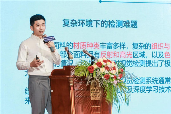 “機(jī)器視覺(jué)檢測(cè)能夠模擬人類視覺(jué)系統(tǒng),對(duì)運(yùn)行中的紡織機(jī)器進(jìn)行圖像采集并識(shí)別有無(wú)缺陷發(fā)生。”紹興織蛛物聯(lián)科技有限公司總經(jīng)理呂華龍以《機(jī)器視覺(jué)檢測(cè)在針紡行業(yè)的應(yīng)用與實(shí)踐》為題,結(jié)合應(yīng)用案例,就機(jī)器視覺(jué)檢測(cè)技術(shù)在紡織行業(yè)的應(yīng)用場(chǎng)景,技術(shù)的挑戰(zhàn)與發(fā)展趨勢(shì)進(jìn)行了分享。他介紹,機(jī)器視覺(jué)檢測(cè)技術(shù)主要用于面料瑕疵、染色均勻性和紗線質(zhì)量檢測(cè),通過(guò)該技術(shù)可提高檢測(cè)效率,降低成本與提升質(zhì)量,實(shí)現(xiàn)智能化生產(chǎn)。今后,行業(yè)發(fā)展將朝著智能化、自動(dòng)化、集成化方向發(fā)展。