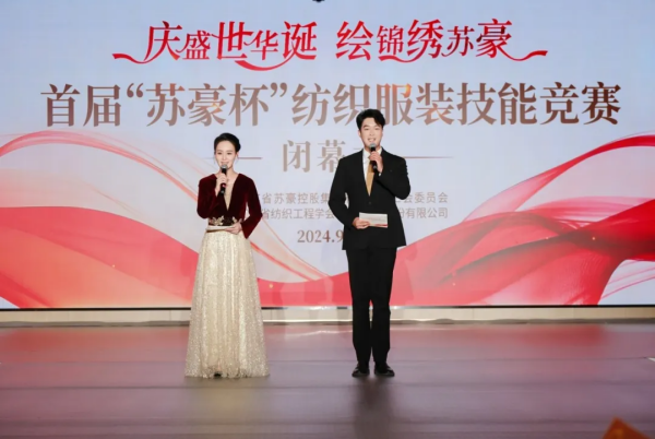 為迎接中華人民共和國(guó)成立75周年,9月29日,蘇豪控股集團(tuán)舉辦首屆“蘇豪杯”紡織服裝技能競(jìng)賽閉幕式暨服裝設(shè)計(jì)技能賽決賽。本次活動(dòng)由集團(tuán)工會(huì)承辦,省紡織工程學(xué)會(huì)、舜天股份公司協(xié)辦。集團(tuán)領(lǐng)導(dǎo)班子成員、省部屬企事業(yè)工會(huì)負(fù)責(zé)人、外部專(zhuān)家評(píng)委,集團(tuán)各部門(mén)和各二級(jí)公司負(fù)責(zé)人、參賽選手、職工代表共160余人參加活動(dòng)。