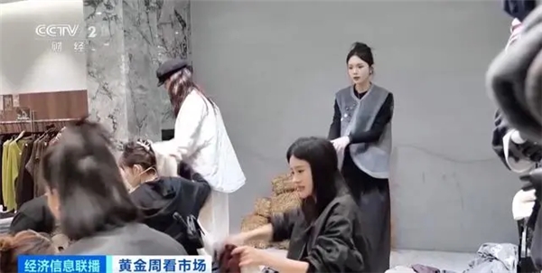 總臺(tái)央視記者 劉彥霖:在杭州四季青服裝市場(chǎng),正值國(guó)慶期間,早上六點(diǎn)半,整個(gè)市場(chǎng)就已經(jīng)做好迎接來自全國(guó)各地消費(fèi)者的準(zhǔn)備。
