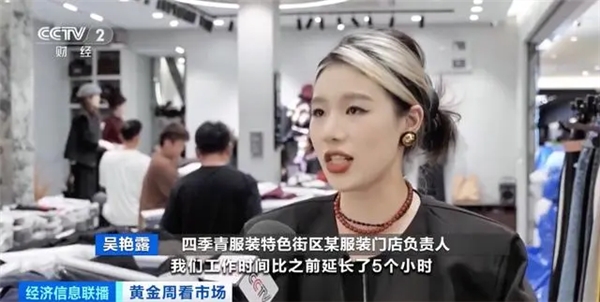四季青服裝特色街區(qū)某服裝門店負(fù)責(zé)人 吳艷露:工作時(shí)間比之前延長(zhǎng)了5個(gè)小時(shí),今年的備貨情況相比去年增加50%。