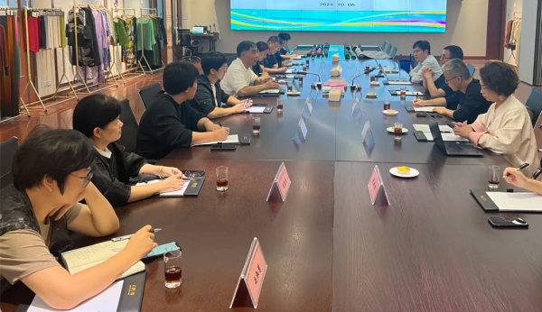 王來力、岑科軍、麻湘萍、張瀟丹分別就絲綢面料設(shè)計、絲巾設(shè)計、時尚秀演與傳播、標(biāo)準(zhǔn)制定等方面的計劃進(jìn)行了介紹,達(dá)利絲綢(浙江)有限公司總經(jīng)理張金珍以及設(shè)計部、產(chǎn)品研發(fā)部、市場部等部門負(fù)責(zé)人結(jié)合產(chǎn)品定位、市場需求與團(tuán)隊成員進(jìn)行了深入交流。