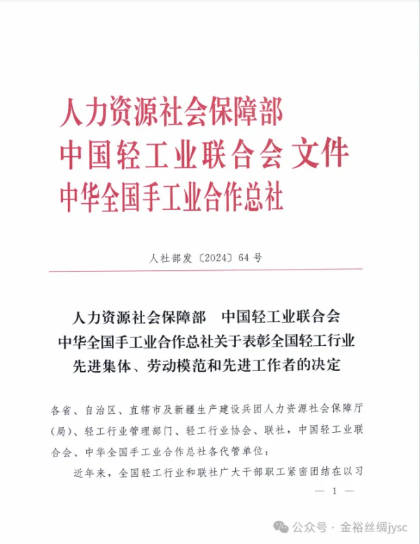 絲企榮譽(yù)丨湖州金裕絲綢科技有限公司織造車間乙班獲“全國(guó)輕工業(yè)先進(jìn)集體”榮譽(yù)