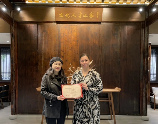 10月12日,中國(guó)絲綢博物館(國(guó)絲館)“人才之家”迎來(lái)了首位錦繡學(xué)者——匈牙利應(yīng)用藝術(shù)博物館的高級(jí)修復(fù)師阿妮可·莫爾(Anikó Moór)。中國(guó)絲綢博物館館長(zhǎng)季曉芬為阿妮可·莫爾頒發(fā)錦繡學(xué)者證書,正式開啟她在國(guó)絲館的學(xué)術(shù)研究之旅。