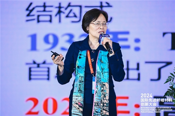 “纖維材料既可以成為紡織工業(yè)升級(jí)換代的起始原材料,也可以滲透到生物應(yīng)用、新能源、環(huán)境等各方面,包括深海探測(cè)、航空航天、國(guó)防軍工等各個(gè)領(lǐng)域?!敝烀婪荚凇度蛳冗M(jìn)纖維材料發(fā)展趨勢(shì)》的演講中闡述了化學(xué)纖維的發(fā)展歷史、創(chuàng)新應(yīng)用和未來(lái)展望。她以國(guó)內(nèi)國(guó)際創(chuàng)新產(chǎn)品為例,講述了高性能纖維在現(xiàn)代工業(yè)化領(lǐng)域以及柔性纖維在人體健康、醫(yī)療康復(fù)等健康生活方面的最新應(yīng)用。她指出,多次工業(yè)革命帶來(lái)了纖維材料的飛躍發(fā)展。在智能時(shí)代,AI將通過(guò)大數(shù)據(jù)、數(shù)字孿生、虛擬現(xiàn)實(shí)、人機(jī)接口等技術(shù)手段賦能纖維產(chǎn)業(yè)發(fā)展,全面推動(dòng)各應(yīng)用領(lǐng)域的創(chuàng)新升級(jí)。