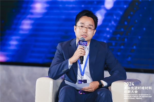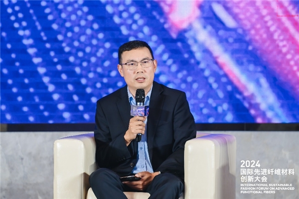 在主題對(duì)話環(huán)節(jié),國(guó)家先進(jìn)功能纖維創(chuàng)新中心研發(fā)副部長(zhǎng)張林以“前沿紡織材料創(chuàng)新動(dòng)向”為主題,圍繞先進(jìn)材料的發(fā)展情況與應(yīng)用趨勢(shì),與來(lái)自纖維、面料和終端應(yīng)用的企業(yè)嘉賓展開(kāi)了前瞻性探討。
