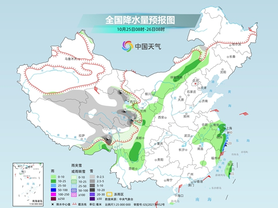 后天,新疆西北部和南部、西藏北部和東部、青海東部和南部、甘肅西部、川西高原等地部分地區(qū)有小到中雪或雨夾雪,其中,西藏東部、青海東部、甘肅西部等地部分地區(qū)有大雪。內蒙古中南部、西藏東南部、四川盆地西南部、江蘇南部、浙江東部、臺灣島東部等地部分地區(qū)有中到大雨,其中,浙江東部等地局地有暴雨或大暴雨。