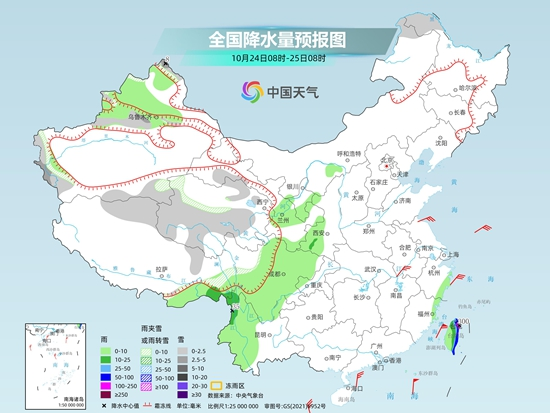 中央氣象臺(tái)預(yù)計(jì),今天新疆阿勒泰山區(qū)和沿天山一帶、南疆西部山區(qū)、西藏北部、青海中南部、甘肅西南部、內(nèi)蒙古東北部、黑龍江西北部等地部分地區(qū)有小到中雪或雨夾雪,其中,新疆阿勒泰山區(qū)局地有大雪。西藏東南部、云南西北部、臺(tái)灣島中部和東部等地部分地區(qū)有中到大雨,其中,臺(tái)灣島東部有暴雨,局地有大暴雨或特大暴雨。