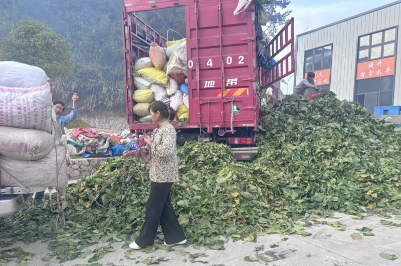 王春霞大嬸滿面笑容地跟我們介紹:“養(yǎng)蠶季過去了,緣豐公司還能收購我們樹上剩的最后一批葉子,這真是件大好事!現(xiàn)在我們每天都有活兒干,趕著桑葉老之前摘下來賣,一斤能賣到6毛錢,一天賣桑葉能賣200多元,天氣好的時候甚至能賣到500多元?!睋?jù)悉,往年養(yǎng)蠶季過了,再加上天冷霜打,最后樹上的桑葉就只能自然脫落,現(xiàn)在有公司收購,群眾種桑葉也實現(xiàn)了“多掙一筆錢”。周邊村落的村民得知消息后,也紛紛加入送桑葉的行列中,再遠鄉(xiāng)鎮(zhèn)的居民也不甘示弱,用貨車裝滿一起送到這里。50公里外的白帽鎮(zhèn)村民陳大伯興奮地說:“我一天能送兩車桑葉過來,大約有1500多斤,還幫忙把附近鄰居家的一起帶過來賣?!?o:p>