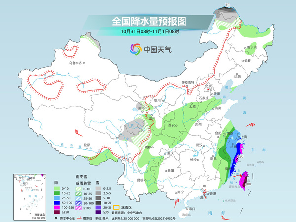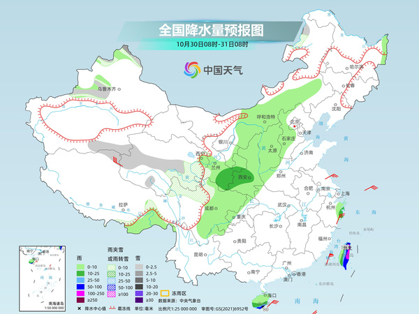 后天,內(nèi)蒙古東北部、黑龍江西北部、新疆北疆北部、青海東部、甘肅西南部、川西高原北部等地部分地區(qū)有小雪或雨夾雪,其中,黑龍江西北部等地部分地區(qū)有中到大雪,局地暴雪。安徽東南部、江蘇東南部、浙江、福建東部、臺(tái)灣島等地部分地區(qū)有大到暴雨,其中,浙江東部、福建東北部、臺(tái)灣島等地部分地區(qū)有大暴雨,臺(tái)灣島東南部局地特大暴雨。