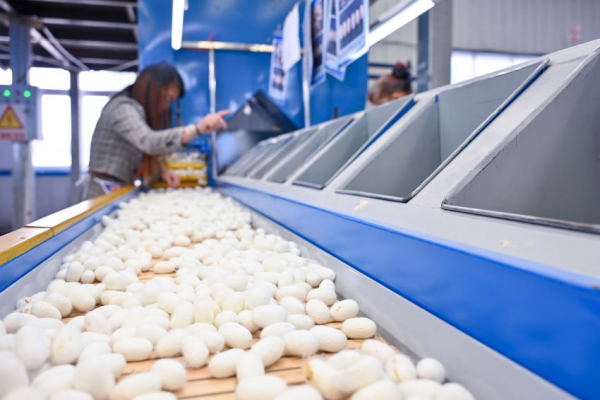 “你可以看到它的顏色非常潔白,絲更長(zhǎng)更有韌性。”納福瑞公司繅絲廠負(fù)責(zé)人李裕丞拿起一粒蠶繭介紹說(shuō),等級(jí)提高后,蠶絲的價(jià)值每噸可以提高4萬(wàn)元,整體提升了公司的產(chǎn)值。