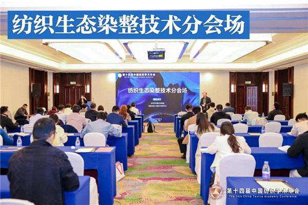 紡織生態(tài)染整技術(shù)分會場由生態(tài)紡織重點實驗室、國家染整工程技術(shù)研究中心承辦。江南大學(xué)王強(qiáng)教授和東華大學(xué)馮雪凌研究員主持會議。東華大學(xué)毛志平教授、大連理工大學(xué)馬威教授、武漢紡織大學(xué)曹根陽教授、天津工業(yè)大學(xué)鞏繼賢教授、青島大學(xué)房寬峻教授、蘇州大學(xué)關(guān)晉平教授、江南大學(xué)王平教授、東華大學(xué)YP色彩研究中心許仲哲主任分別為年會作題為“聚酯纖維筒子紗超臨界CO2流體無水染色技術(shù)”“一維結(jié)構(gòu)生色材料的構(gòu)筑及應(yīng)用研究”“芳香族高性能纖維顏色構(gòu)建及應(yīng)用實踐”“聚酯纖維的生物降解與生物加工”“萊賽爾纖維防原纖化與功能化新策略”“從國際標(biāo)準(zhǔn)視角看紡織可持續(xù)發(fā)展”“生物酶催化氧化絲素蛋白功能化改性加工”“中國色彩科學(xué)基礎(chǔ)理論的再研究及產(chǎn)業(yè)內(nèi)外部的影響”的學(xué)術(shù)報告。