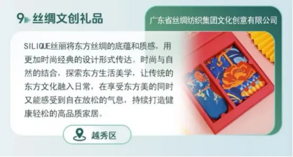 “廣貨”新品雙線圈粉。廣交會(huì)三期以“美好生活”為主題,絲紡集團(tuán)擁抱新消費(fèi)趨勢,出海要打“高端局”,發(fā)揮繭絲綢產(chǎn)業(yè)“鏈主”優(yōu)勢,傳承廣東絲綢文化的同時(shí),結(jié)合廣東獨(dú)有的絲綢面料莨紗綢低碳、可持續(xù)的特點(diǎn),推出自主設(shè)計(jì)非遺工藝香云紗新式服裝產(chǎn)品,新品率達(dá)80%。“莨紗綢”面料使用純植物作染料加手工制作而成,是最為環(huán)保的特色紡織品之一。面料色澤高貴典雅,質(zhì)地細(xì)膩柔軟,裁剪成衣后涼爽宜人、輕薄且不易折皺?!癝ILIQUE”品牌香云紗服裝賦予絲綢這一古老面料以時(shí)尚、現(xiàn)代元素,向海內(nèi)外客商展示了絲綢多元化之美。值得一提的是,絲綢文化公司文創(chuàng)禮盒日前入選首批廣州“必購必帶”城市禮物名單。