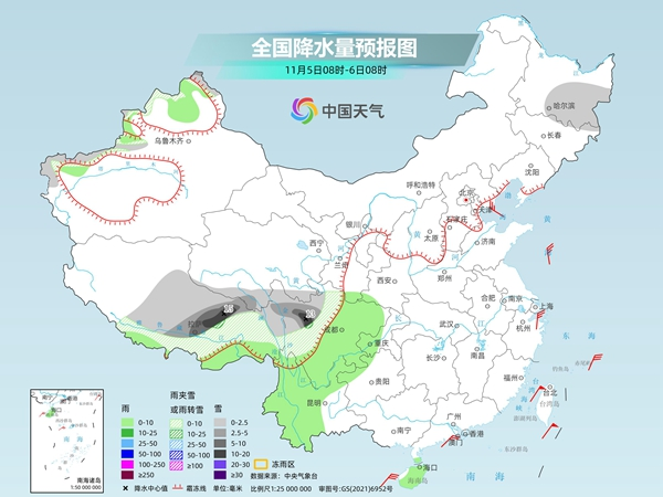 明天,黑龍江東南部、新疆北疆北部和南疆盆地西部、西藏中東部、青海南部、川西高原等地部分地區(qū)有小雪或雨夾雪,其中,西藏中東部、青海南部、川西高原北部等地部分地區(qū)有中到大雪,西藏東北部、川西高原北部等地局地暴雪。新疆北疆北部低海拔地區(qū)、西藏東南部、四川盆地中西部、云南北部和中西部、海南島等地部分地區(qū)有小到中雨。