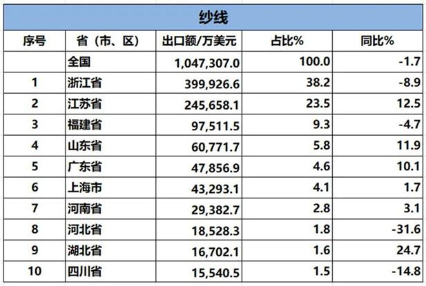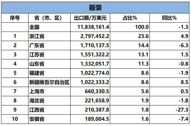 2024年1-8月我國紡織服裝重點(diǎn)省市出口概況