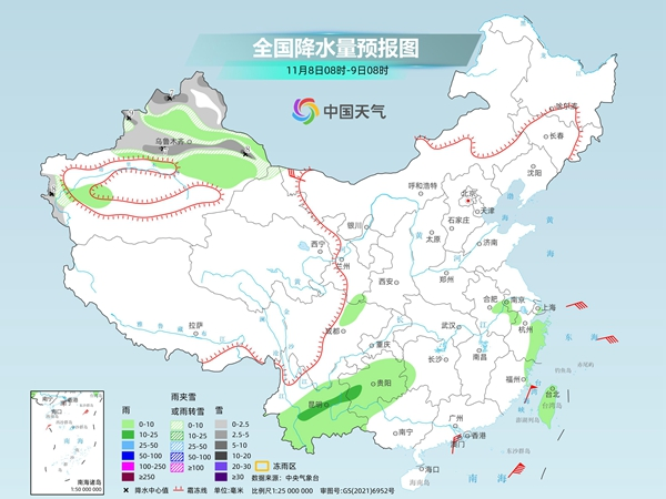 中央氣象臺(tái)預(yù)計(jì),今天,新疆北部和南疆西部山區(qū)、西藏東北部等地部分地區(qū)有小到中雪或雨夾雪,其中,新疆北部高海拔山區(qū)和南疆西部山區(qū)等地局地有大到暴雪。西藏東南部、川西高原大部、四川中南部、云南、貴州西部、海南島、臺(tái)灣島等地部分地區(qū)有小到中雨,其中,云南南部等地部分地區(qū)有大到暴雨。