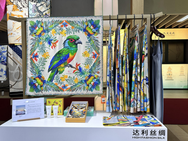 達(dá)利絲綢是國家絲綢產(chǎn)品開發(fā)基地,也是國家絲綢產(chǎn)品流行趨勢(shì)研究發(fā)布中心。達(dá)利絲綢曾作為2014APEC會(huì)議領(lǐng)導(dǎo)人服裝、2016年G20杭州峰會(huì)指定產(chǎn)品、2020年聯(lián)合國成立75周年活動(dòng)禮品、2020年東京奧運(yùn)會(huì)中國體育代表團(tuán)開幕式禮服、2022年北京冬奧會(huì)頒獎(jiǎng)禮服面料的設(shè)計(jì)和制造企業(yè)。據(jù)展臺(tái)負(fù)責(zé)人介紹,本次進(jìn)博會(huì)上,達(dá)利絲綢還有一個(gè)亮點(diǎn)便是以南美大陸拍攝的飛鳥照片為靈感創(chuàng)作的一系列原創(chuàng)絲巾產(chǎn)品。他們希望通過進(jìn)博會(huì)這個(gè)平臺(tái),在國際舞臺(tái)上碰撞出全新的無限可能。