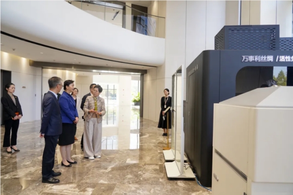 值得一提的是,就在調(diào)研當(dāng)日,萬事利的 GBART 活性免水洗印染一體機在進(jìn)博會中國國家館驚艷亮相,與中廣核、華為、吉利、科大訊飛等優(yōu)秀企業(yè)共同展示了中國在新質(zhì)生產(chǎn)力領(lǐng)域的卓越成就,向世界傳遞了中國紡織行業(yè)的創(chuàng)新強音。