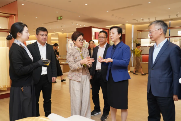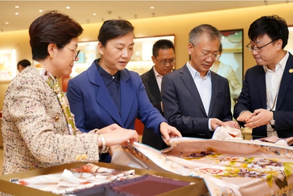 參觀萬事利絲綢藝術(shù)館、企業(yè)文化館及品牌展示中心,從東西方絲綢藝術(shù)珍品的保護(hù)、企業(yè)創(chuàng)始人精神的傳承到絲綢時尚精品的展示,王文序部長強調(diào),核心技術(shù)是企業(yè)參與全球競爭的“硬通貨”,加強核心技術(shù)保護(hù)對于浙江企業(yè)保持創(chuàng)新領(lǐng)先地位、應(yīng)對國際挑戰(zhàn)至關(guān)重要。