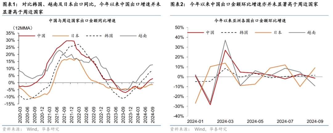 從今年情況來看,從國際對(duì)比上,今年以來,中國出口增速并未有明顯高于周邊亞洲國家、或體現(xiàn)出今年仍未出現(xiàn)大規(guī)模搶出口效應(yīng)。