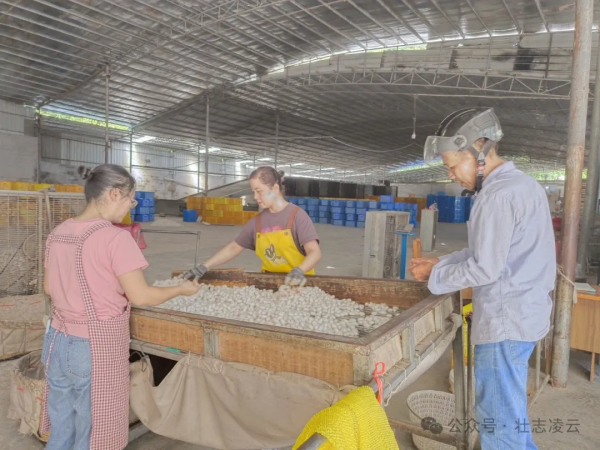 近日,記者在廣西凌云羽騰制絲有限責(zé)任公司(以下簡稱“凌云羽騰公司”)的廠房里看到,前來售繭的蠶農(nóng)絡(luò)繹不絕,一袋袋圓滾滾的蠶繭如雪似霜,蠶農(nóng)們臉上洋溢著豐收的喜悅?,F(xiàn)場工作人員按質(zhì)論價(jià)、優(yōu)質(zhì)優(yōu)價(jià),從篩選、檢驗(yàn)、定級,到稱重、定價(jià)、開票,一切井然有序。