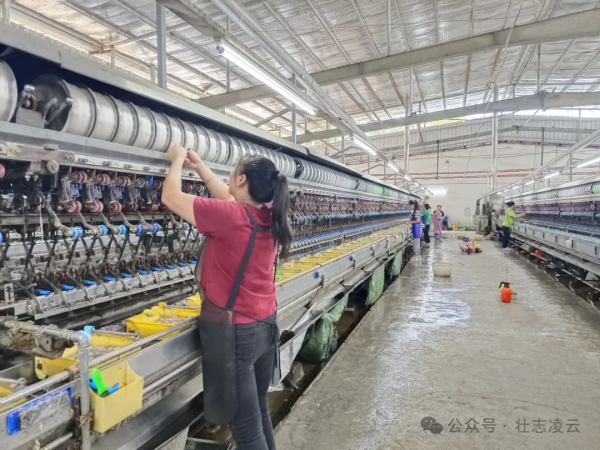 而在繅絲車間內(nèi),機(jī)器聲隆隆,銀絲穿梭,各條生產(chǎn)線快速運(yùn)轉(zhuǎn),工人們在各自崗位上專注工作,現(xiàn)場一派繁忙景象。