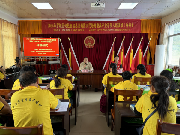 2024年11月4日,由廣西羅城仫佬族自治縣農(nóng)業(yè)農(nóng)村局主辦,南寧市中農(nóng)興桂職業(yè)技能培訓(xùn)學(xué)校有限公司承辦的2024年羅城仫佬族自治縣高素質(zhì)農(nóng)民培育蠶桑產(chǎn)業(yè)帶頭人培訓(xùn)班順利開班。