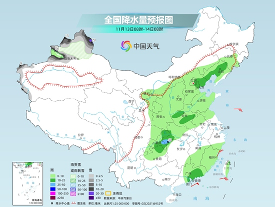 具體來看,中央氣象臺預(yù)計,今天新疆北部和南疆西部山區(qū)等地部分地區(qū)有小到中雪或雨夾雪,其中,新疆阿勒泰山區(qū)、塔城北部、伊犁河谷周邊山區(qū)等地部分地區(qū)有大到暴雪,局地大暴雪。東北地區(qū)南部、西北地區(qū)東部、華北、黃淮、江淮北部、江漢大部、江南中南部、西南地區(qū)東部、華南中東部、臺灣島等地部分地區(qū)有小雨,其中,遼寧中北部和西部、河北東北部、北京東部、天津大部、河南中部、重慶中東部、湖北西南部、湖南西北部、廣東中東部沿海等地部分地區(qū)有中雨,局部大雨。