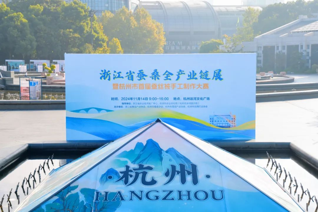 一顆顆蠶繭背后,是一條栽桑、養(yǎng)蠶、繅絲、織綢的產(chǎn)業(yè)鏈,更是穿越數(shù)千年時光積淀下來的文化與傳承。現(xiàn)場的浙江省蠶桑全產(chǎn)業(yè)鏈展,給出了很好的詮釋。廣場上的兩塊巨幅展板,分為“傳承經(jīng)典”和“融合未來”,記錄浙江蠶桑業(yè)的起源,展示浙江致力于高水平保護(hù)和傳承蠶桑產(chǎn)業(yè)、推動產(chǎn)業(yè)轉(zhuǎn)型升級的生動實(shí)踐,以及浙江蠶桑業(yè)發(fā)展史上的重要節(jié)點(diǎn)和經(jīng)典成果。