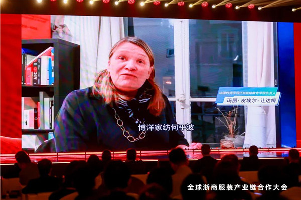 遠(yuǎn)在重洋的IFM法國(guó)時(shí)尚學(xué)院繼續(xù)教育學(xué)院院長(zhǎng)Marie-Pierre GENDARME雖未能到場(chǎng),但依然發(fā)來(lái)祝賀視頻。IFM深知人才是推動(dòng)時(shí)尚產(chǎn)業(yè)發(fā)展的重要力量,非常重視與浙江省服裝行業(yè)協(xié)會(huì)的合作,協(xié)會(huì)在促進(jìn)中法乃至更廣泛范圍的時(shí)尚人才交流發(fā)揮重要作用。雙方合作的“時(shí)尚巴黎體驗(yàn)”項(xiàng)目,從品牌運(yùn)營(yíng)、產(chǎn)品管理、時(shí)尚文化和創(chuàng)新以及工藝和技術(shù)等課程,多角度、多元化賦能人才和企業(yè)發(fā)展,成為產(chǎn)業(yè)升級(jí)轉(zhuǎn)型、提升競(jìng)爭(zhēng)力的重要力量。IFM希望與浙江省服裝行業(yè)協(xié)會(huì)深入合作,推動(dòng)兩地乃至全球時(shí)尚產(chǎn)業(yè)鏈的資源共享。