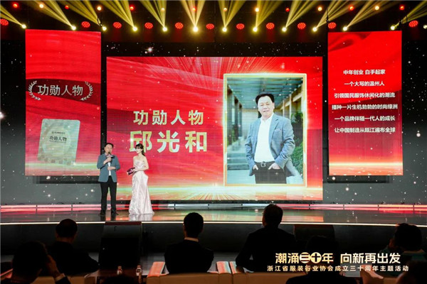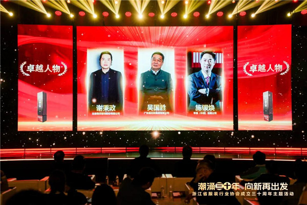 為了向浙江服裝行業(yè)先驅(qū)致以崇高的敬意,活動(dòng)現(xiàn)場(chǎng)特別采用人屏互動(dòng)技術(shù),時(shí)空朗讀《激蕩》一文,表達(dá)對(duì)老一輩服裝人的深切敬意與懷念。同時(shí),還對(duì)在浙江服裝產(chǎn)業(yè)發(fā)展中作出杰出貢獻(xiàn)的功勛人物進(jìn)行了表彰,雅戈?duì)枙r(shí)尚股份有限公司董事長(zhǎng)李如成、森馬集團(tuán)有限公司董事長(zhǎng)邱光和、原茉織華實(shí)業(yè)(集團(tuán))有限公司總經(jīng)理李勤夫、申洲國(guó)際集團(tuán)控股有限公司董事長(zhǎng)馬建榮等人獲此殊榮。此外,“創(chuàng)時(shí)代”人物、“銳世代”人物等獎(jiǎng)項(xiàng)也逐一揭曉。獲獎(jiǎng)代表萬(wàn)事利集團(tuán)有限公司董事長(zhǎng)屠紅燕,中國(guó)時(shí)裝設(shè)計(jì)最高獎(jiǎng)“金頂獎(jiǎng)”獲得者、中國(guó)美術(shù)學(xué)院博士生導(dǎo)師吳海燕,寧波培羅成集團(tuán)有限公司副總裁陸江洋在“風(fēng)云對(duì)話”環(huán)節(jié)進(jìn)行了精彩的分享與交流。