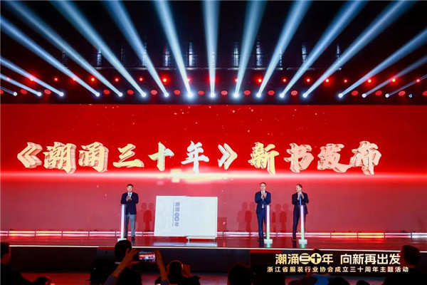 在浙江省服裝行業(yè)協(xié)會(huì)成立三十周年主題活動(dòng)中,為了記錄浙江服裝行業(yè)三十年發(fā)展歷程,活動(dòng)現(xiàn)場(chǎng)還特別舉行了《潮涌三十年》新書發(fā)布儀式,中國(guó)紡織工業(yè)聯(lián)合會(huì)會(huì)長(zhǎng)孫瑞哲,長(zhǎng)三角服裝聯(lián)盟主席、浙江省服裝行業(yè)協(xié)會(huì)第七屆會(huì)長(zhǎng)馮德虎,中國(guó)紡織出版社有限公司董事長(zhǎng)鄭偉良一同上臺(tái)發(fā)布。本書由浙江省服裝行業(yè)協(xié)會(huì)著、《中國(guó)服飾》雜志采編、中國(guó)紡織出版社有限公司出版,詳細(xì)記錄了浙江省服裝行業(yè)協(xié)會(huì)成立三十年來(lái),浙江一代代服裝人如何“走遍千山萬(wàn)水、說(shuō)盡千言萬(wàn)語(yǔ)、想盡千方百計(jì)、吃盡千辛萬(wàn)苦”,實(shí)現(xiàn)浙江服裝產(chǎn)業(yè)由弱到強(qiáng)的華麗蛻變。而這份耀眼的成績(jī)單,離不開(kāi)無(wú)數(shù)浙江服裝人的智慧、奉獻(xiàn)與熱愛(ài)。