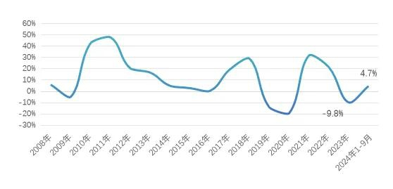 圖5 2008年以來(lái)化纖行業(yè)固定資產(chǎn)投資增速變化