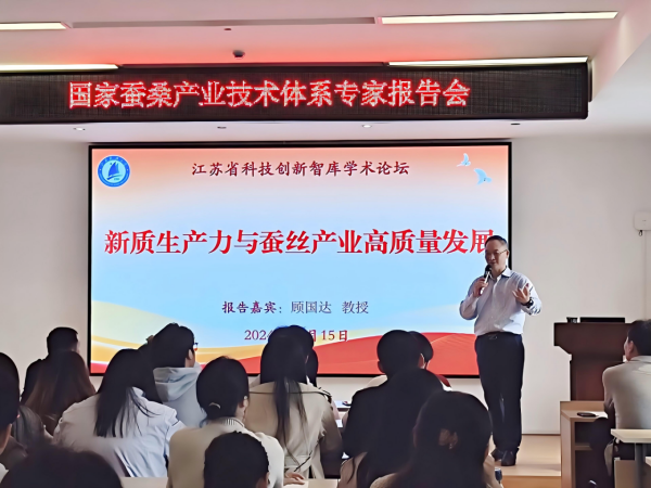 11月15日上午,應(yīng)江蘇科技大學(xué)生物技術(shù)學(xué)院、蠶業(yè)研究所邀請(qǐng),浙江大學(xué)國(guó)際經(jīng)濟(jì)研究所所長(zhǎng)顧國(guó)達(dá)教授,在江蘇科技大學(xué)生物技術(shù)樓330會(huì)議室作了題為《新質(zhì)生產(chǎn)力與蠶絲業(yè)高質(zhì)量發(fā)展》的學(xué)術(shù)報(bào)告。黨委常委、副校長(zhǎng)李木旺研究員、院(所)領(lǐng)導(dǎo)班子成員、相關(guān)專(zhuān)業(yè)老師和學(xué)生參加報(bào)告,譚安江院(所)長(zhǎng)主持報(bào)告會(huì)。