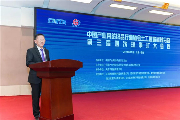 11月21日,中國產(chǎn)業(yè)用紡織品行業(yè)協(xié)會土工建筑材料分會第三屆四次理事擴(kuò)大會議在山東泰安召開。