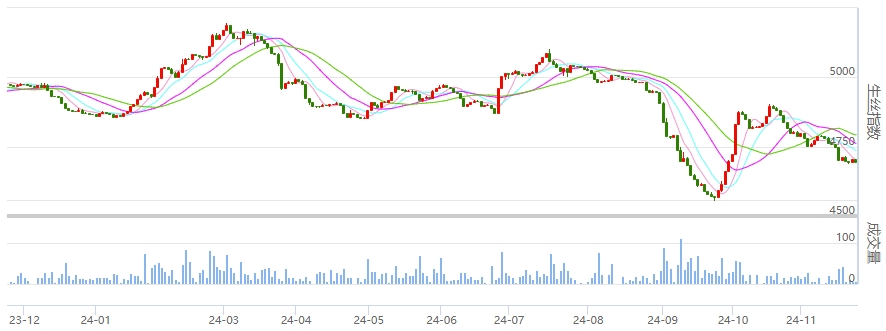 20/22D商檢4A級(jí)生絲:今日(周一)生絲盤面各遠(yuǎn)近合約價(jià)格價(jià)格繼續(xù)有所收綠,成交一般,今日生絲指數(shù)和主力合約均跌破5日均線,運(yùn)行于中短均線下方;同時(shí),RSI指標(biāo)三線逐步粘合于30下方,下跌動(dòng)能有所減弱。