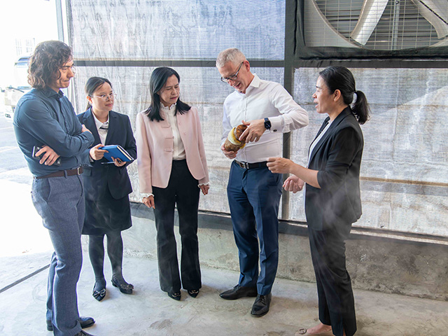調(diào)研組一行先后對人工飼料養(yǎng)蠶研發(fā)中心、桑黃試驗(yàn)栽培大棚、果桑農(nóng)旅融合高效發(fā)展新模式示范大棚進(jìn)行考察,廣西蠶業(yè)技術(shù)推廣站相關(guān)科室負(fù)責(zé)同志現(xiàn)場進(jìn)行了詳細(xì)的解說。調(diào)研過程中,廣西蠶業(yè)技術(shù)推廣站黃紅燕副站長向卡雷爾一行介紹廣西蠶桑產(chǎn)業(yè)發(fā)展情況和廣西蠶業(yè)技術(shù)推廣站在種業(yè)和資源綜合利用方面取得的成果。