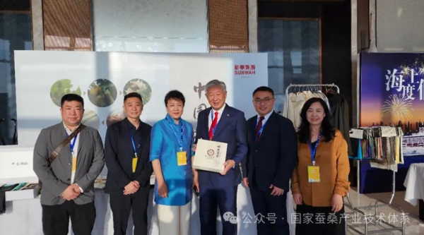 多年來,國(guó)家蠶桑產(chǎn)業(yè)技術(shù)體系強(qiáng)化體系成果的示范、推廣及應(yīng)用,通過科技賦能發(fā)展新質(zhì)生產(chǎn)力,有力推動(dòng)了我國(guó)蠶桑產(chǎn)業(yè)的高質(zhì)量發(fā)展。本次參會(huì)的體系對(duì)接企業(yè),以市場(chǎng)為導(dǎo)向,依托體系崗位科學(xué)家團(tuán)隊(duì)研發(fā)的蛹蟲草、柞蠶絲素肽相關(guān)專利成果和技術(shù)優(yōu)勢(shì),深入發(fā)掘遼寧特色柞蠶資源的價(jià)值,開發(fā)出蛹蟲草白茶、柞蠶絲素肽化妝品、柞蠶絲織品及高級(jí)定制服裝等系列產(chǎn)品,已快速成長(zhǎng)為柞蠶深加工領(lǐng)域的新型企業(yè)。在本次迪拜華商周期間,其參展的柞蠶絲高級(jí)定制套裝產(chǎn)品得到了阿聯(lián)酋對(duì)外貿(mào)易部部長(zhǎng)薩尼(中)、中國(guó)駐迪拜總領(lǐng)事歐渤芊(右)、香港中華商會(huì)會(huì)長(zhǎng)蔡冠深(左)等國(guó)內(nèi)外嘉賓的高度認(rèn)可和極大關(guān)注。